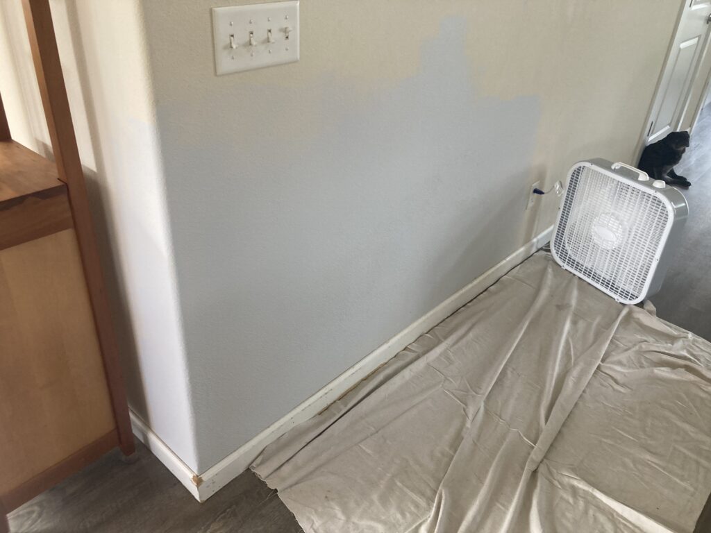 Andrea S., Feb 9, 2023, started repair of wall moulding gouge and door hole